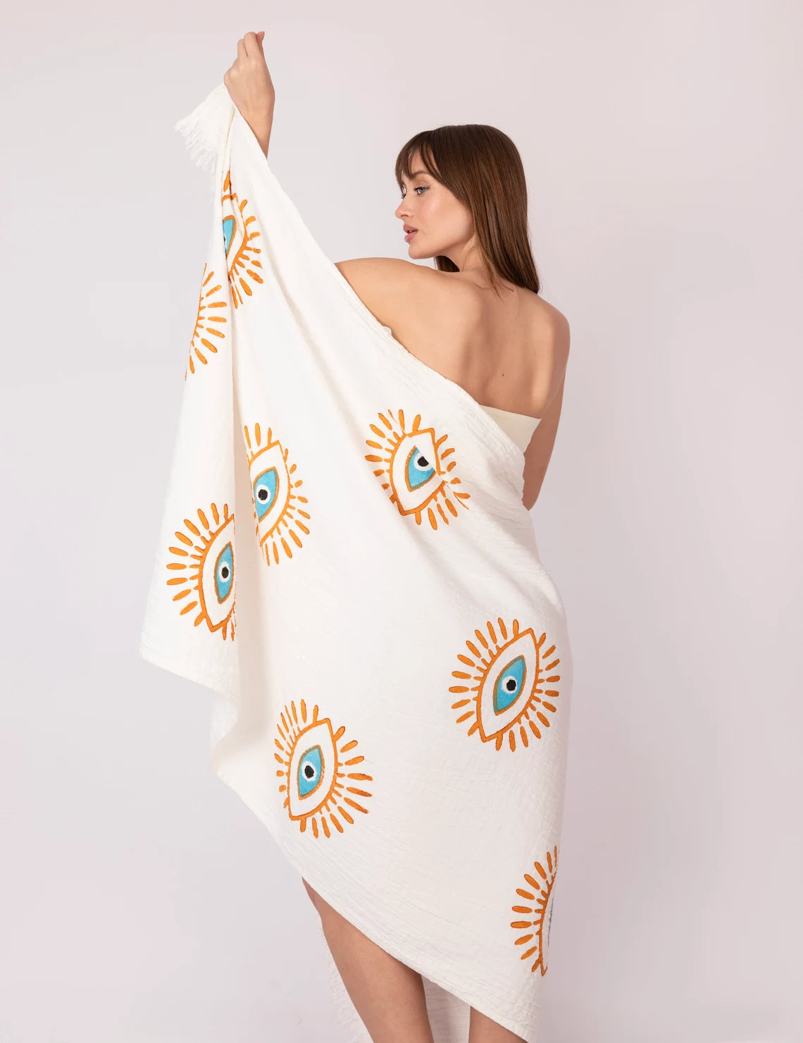 100% Organic Cotton robe, hand made and printed robe. Enjoy this robe at home or on the beach. Our robes are made from Turkish towels making them so soft and highly absorbent.