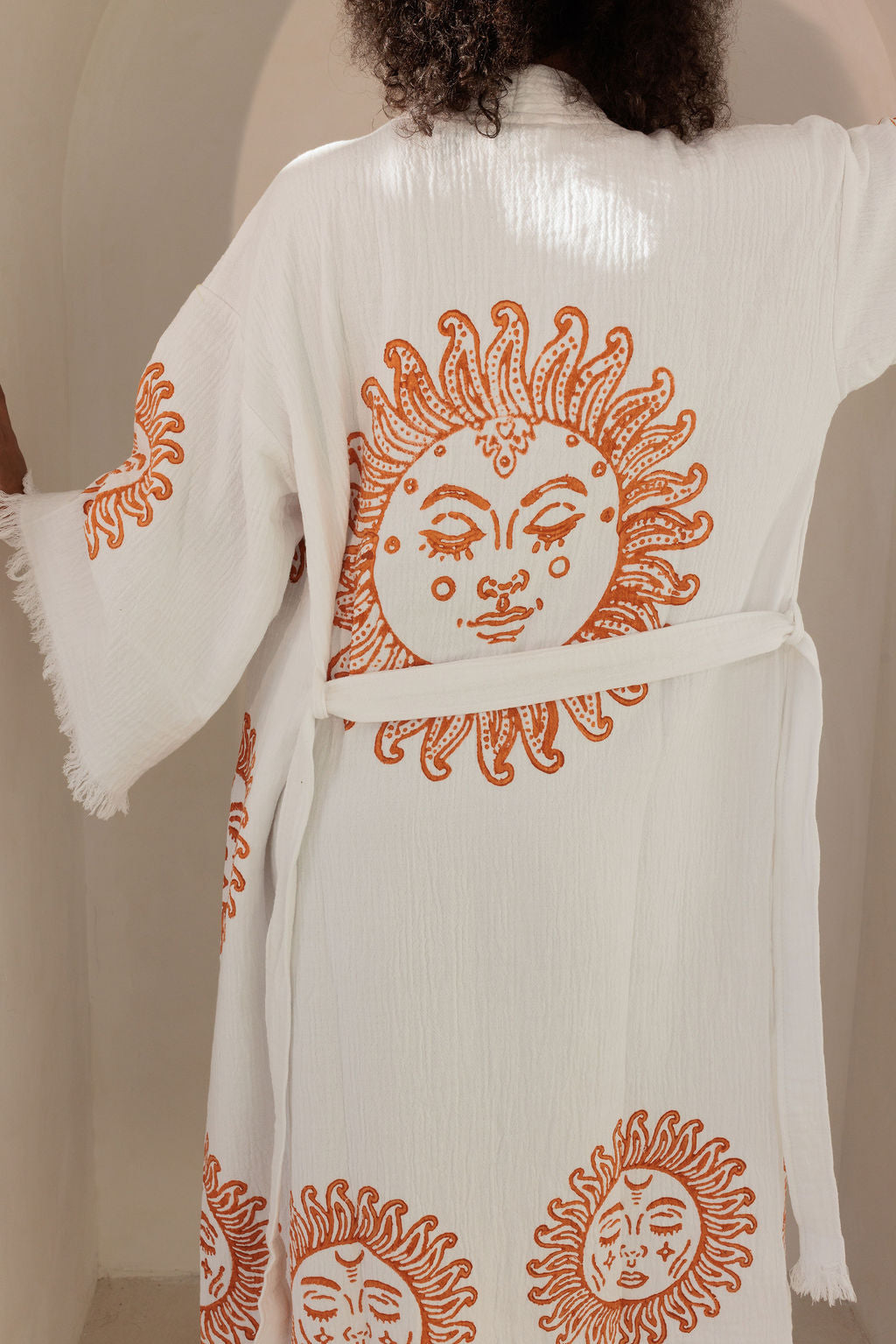 100% Organic Cotton robe, hand made and printed robe. Enjoy this robe at home or on the beach.