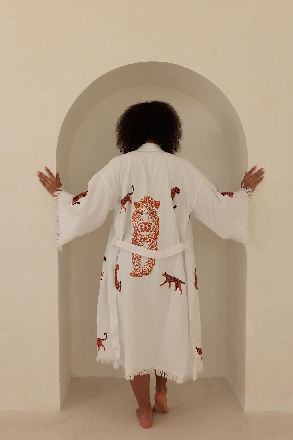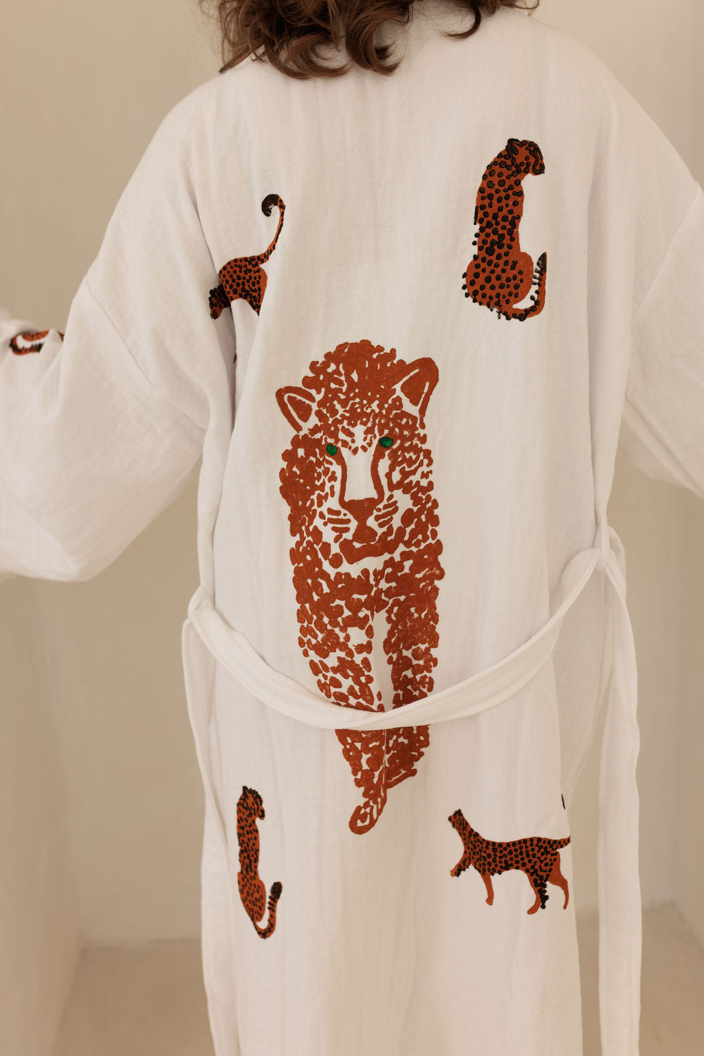 100% Organic Cotton robe, hand made and printed robe. Enjoy this robe at home or on the beach.